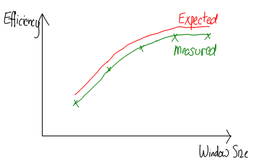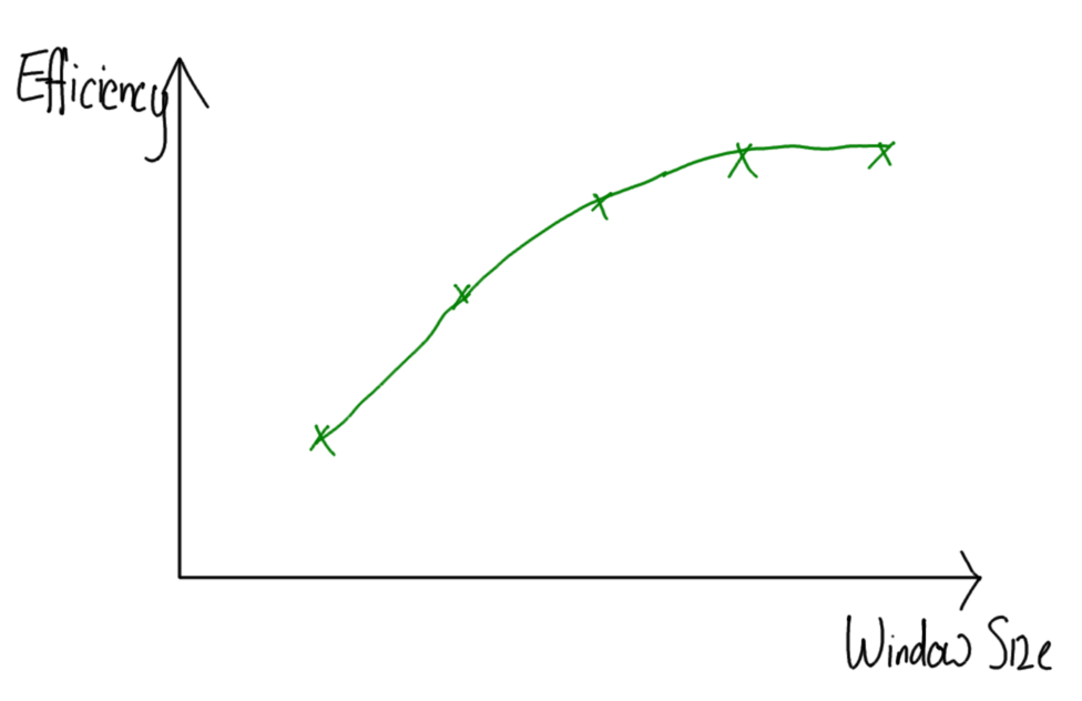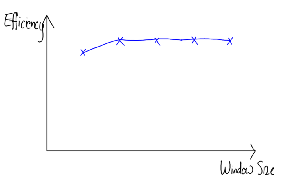 The 2nd point is evident when changing the window size. Some students have performed experiments with different window sizes but obtain about the same efficiency. I will explain what causes this in the following.